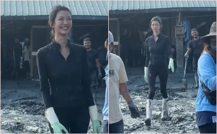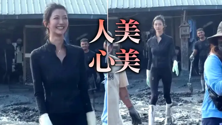 有網友曬出在災區拍下的短片,影片中一名高挑女子身穿黑色緊身衣、白色雨靴與手套,踩著泥濘卻依舊笑容滿面,氣場全開地走出「時尚伸展台」的氣勢,苦中作樂的畫面瞬間爆紅。網友紛紛留言驚呼:「笑容太美了!」、「這女孩兒不是一般人!AI也磨不出來!」、「人美心也美!」。