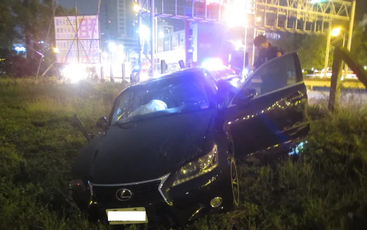 昨天晚間10點48分左右,蘇姓男子(44歲)駕駛黑色凌志自小客,沿台灣大道四段慢車道往市區方向行駛,行經安和路時因心臟栓塞無力操作車輛,先擦撞人行道路緣,頓時失控撞上前方騎乘機車的張姓女子(32歲),整輛車再衝入路旁雜草空地。