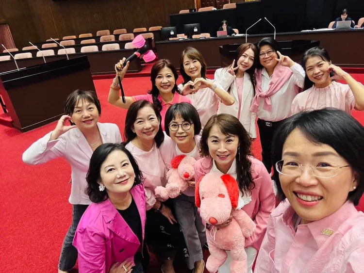 此外,民進黨高雄立委今召開「重修財劃法 還高雄公平正義」記者會,邱議瑩身穿粉色西裝外套及褲子、黃捷穿著粉色外套、許智傑搭配粉色襯衫、賴瑞隆打上粉色領帶。